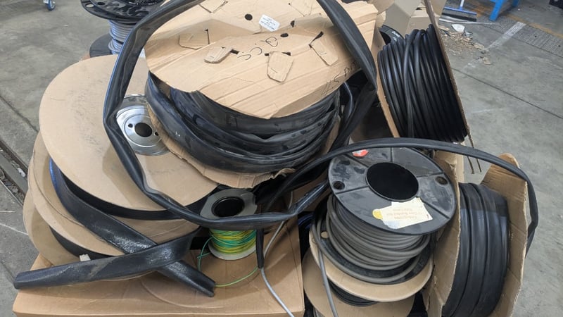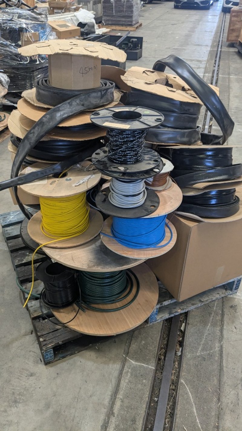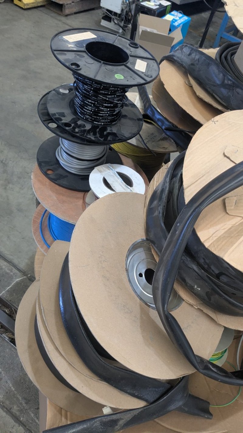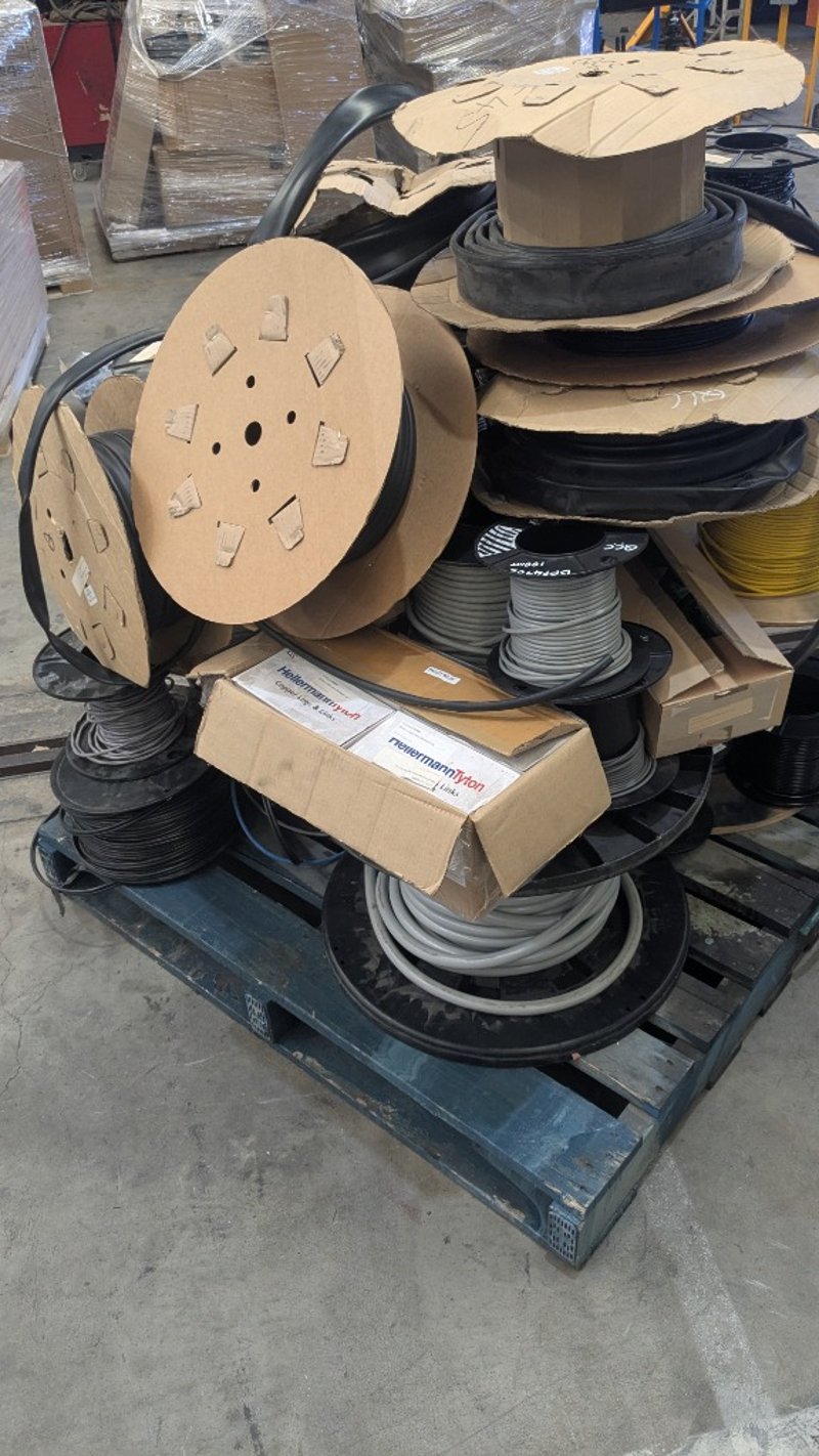 Assorted Electrical Supplies, Includes Cable, PVC Tubing, Copper Lug Links and more, Quantity to Pallet SOLD AS LOT NOTE: INSPECTIONS HIGHLY RECOMMENDED