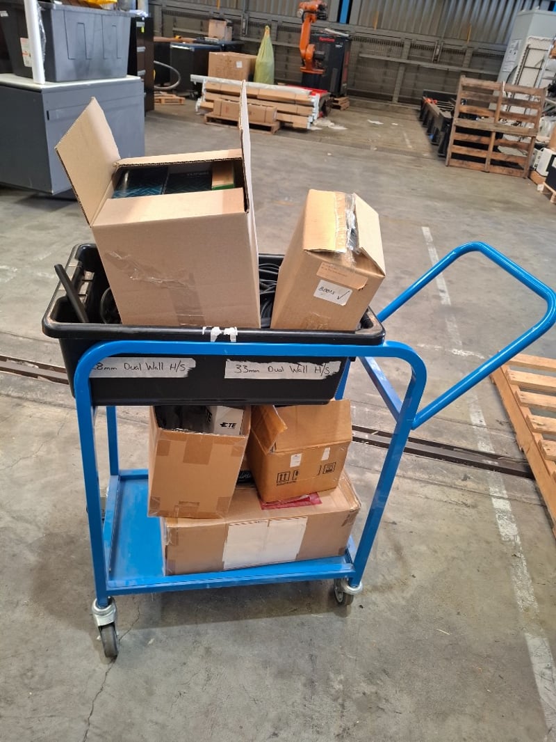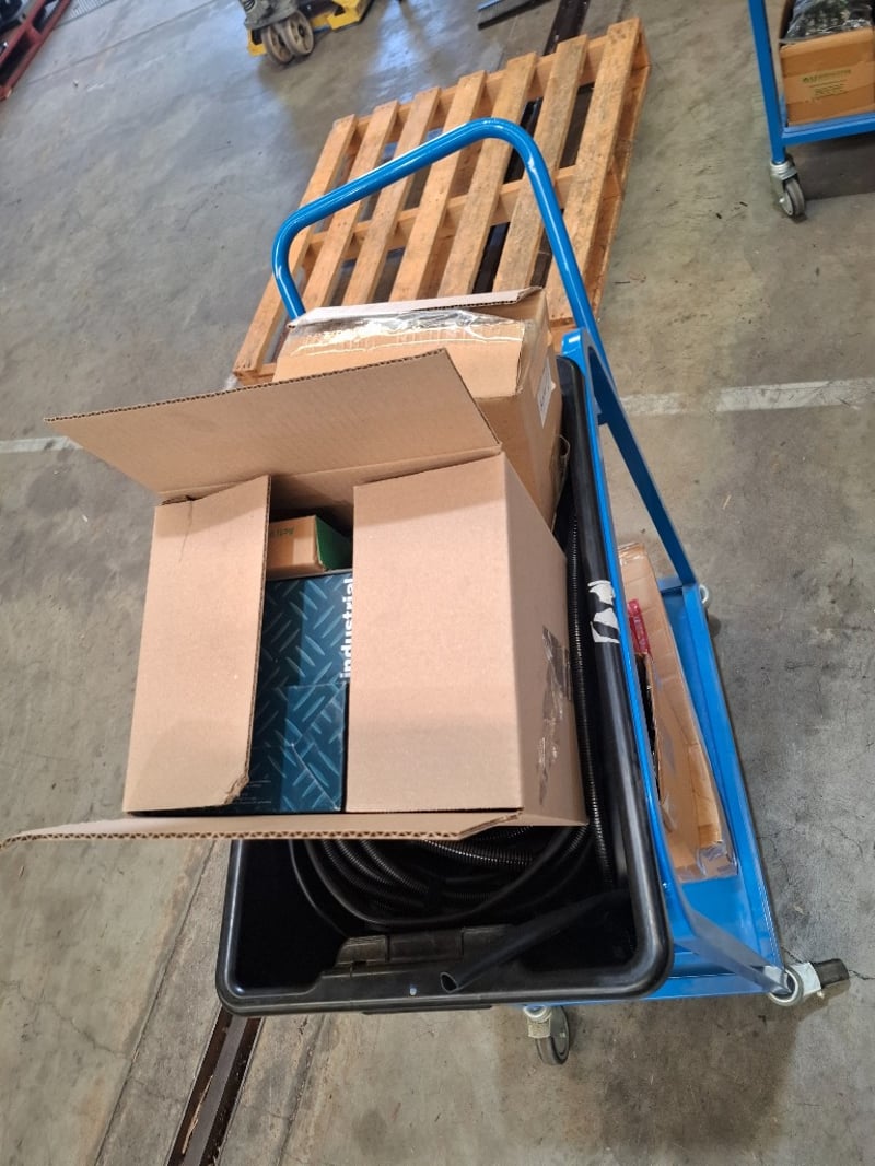 Assorted cables, and electrical parts includes Trolley Dimensions: 900mmn(W) x 420mm (D) x 105mm(H) SOLD AS LOT NOTE: INSPECTIONS HIGHLY RECOMMENDED