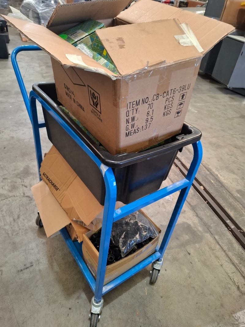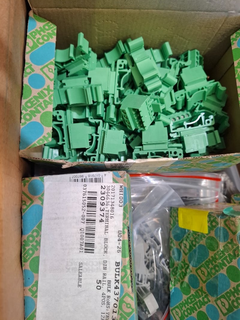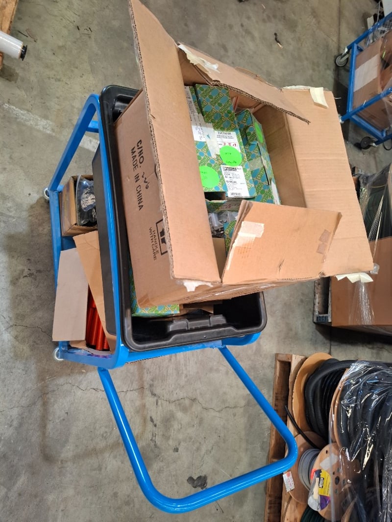 Assorted termnial block , power board cords electrical 25HD -10/60 includes trolley Dimensions: 900mmn(W) x 420mm (D) x 105mm(H) SOLD AS LOT NOTE: INSPECTIONS HIGHLY RECOMMENDED