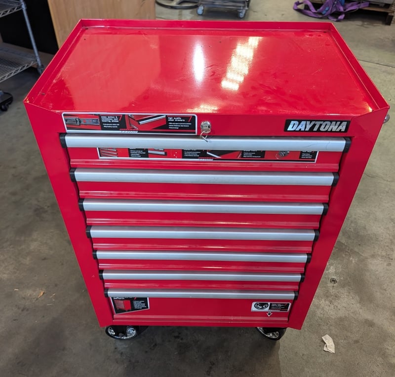 Daytona professional-grade tool chest featuring a robust red powder-coated steel construction with chrome-plated handles and 7 ball-bearing drawer slides. Dimensions: 100cm(H) x 46cm(D) X 80cm(W)Sold As Lot Dimensions: 100cm(H) x 46cm(D) X 80cm(W)Sold As Lot