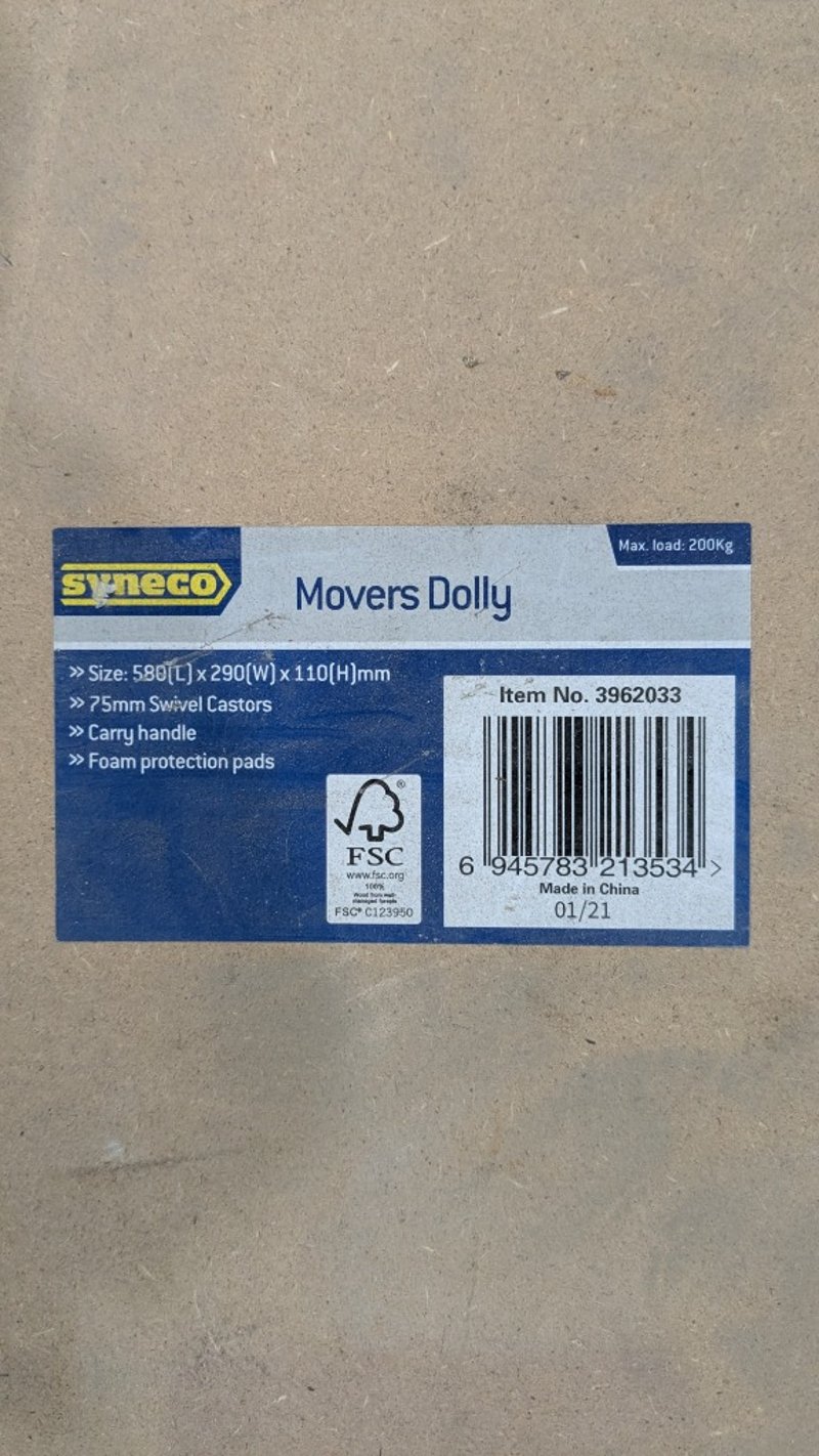Moving Dolly, Syneco, Swivel Castors, Quantity 4