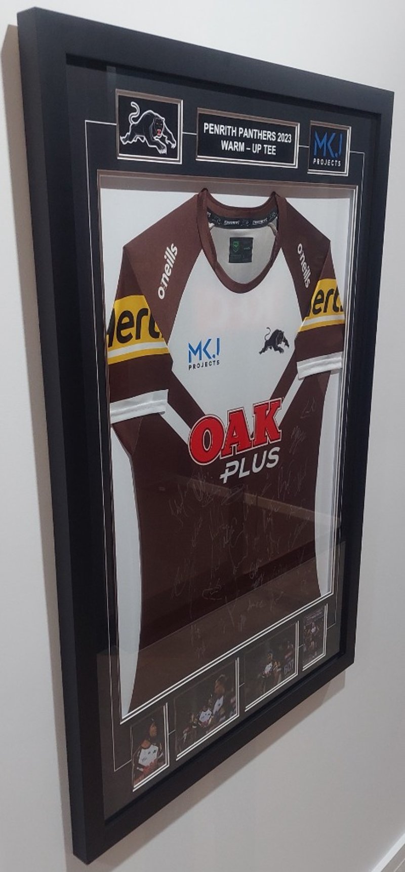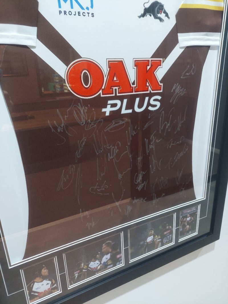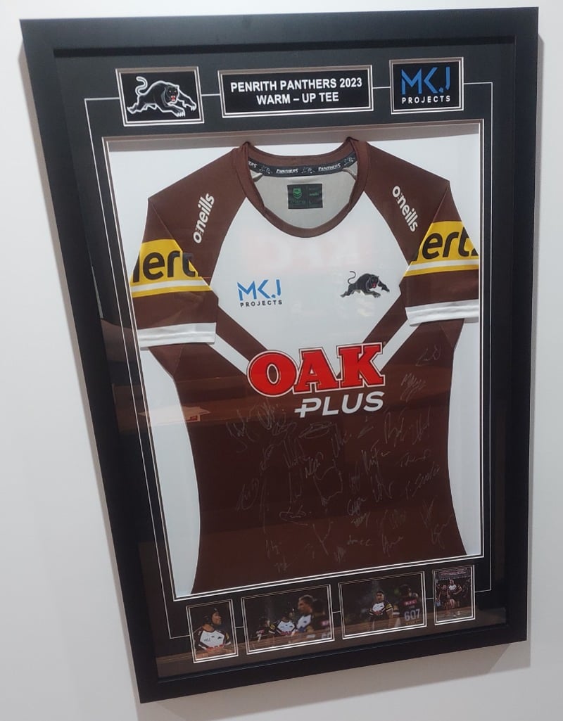 Framed, autographed Penrith Panthers 2023 warm-up tee