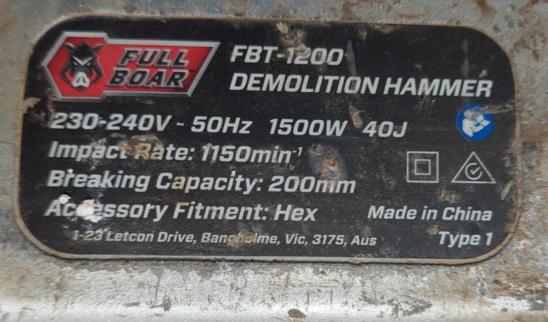 Full Boar 1500W Demolition Hammer.