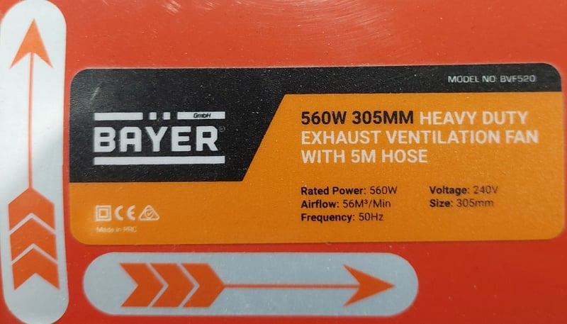 Bayer BVF520 560W 305mm (12") heavy duty extractor ventilation fan. Note: item is untested, signs of wear.