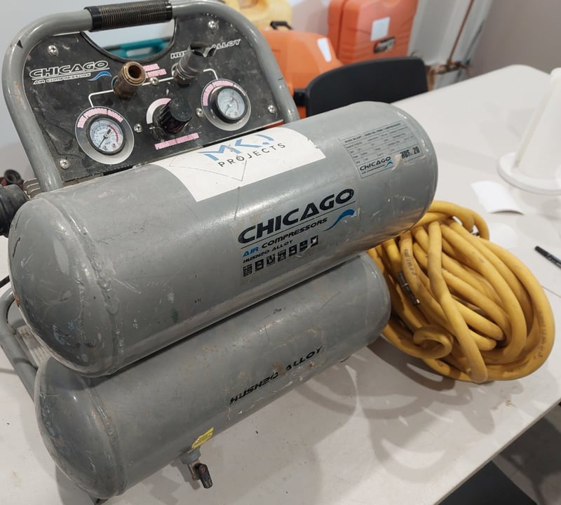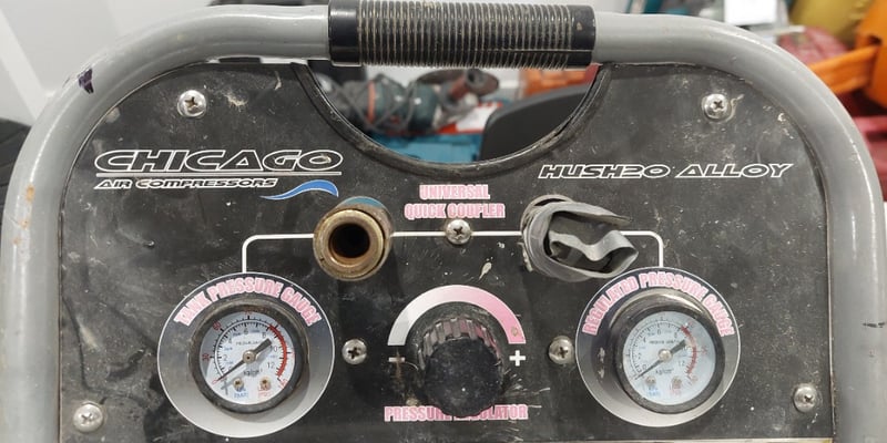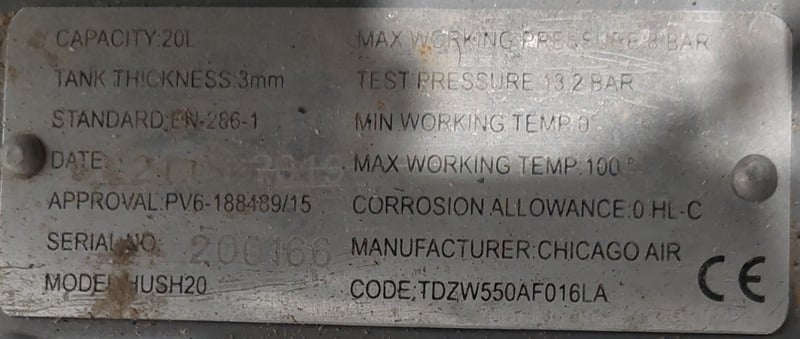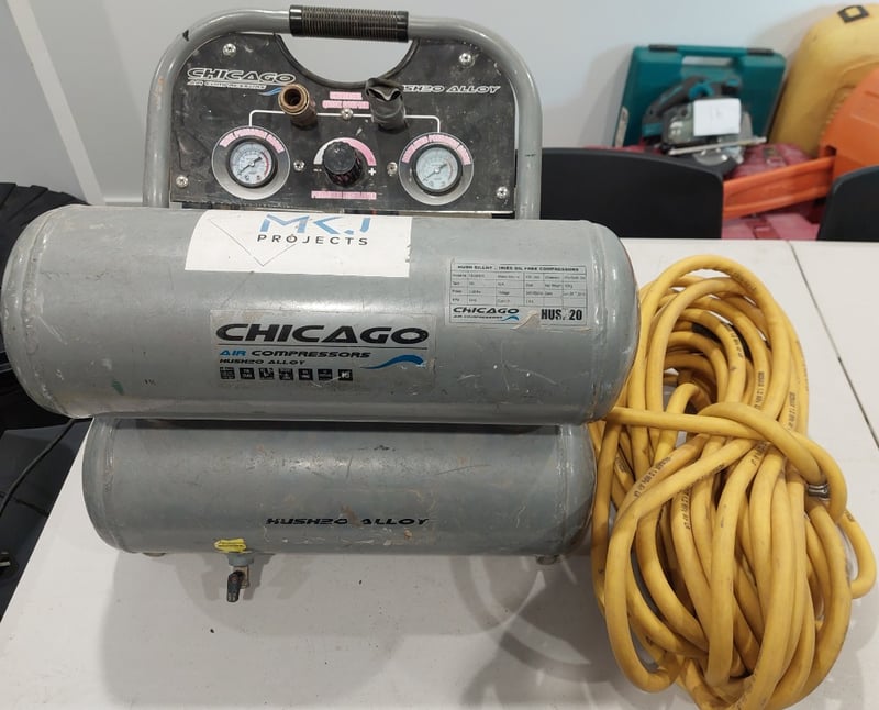 Chicago Air HUSH20 20L Aluminium Silenced Air Compressor. Note: item is untested, signs of wear.