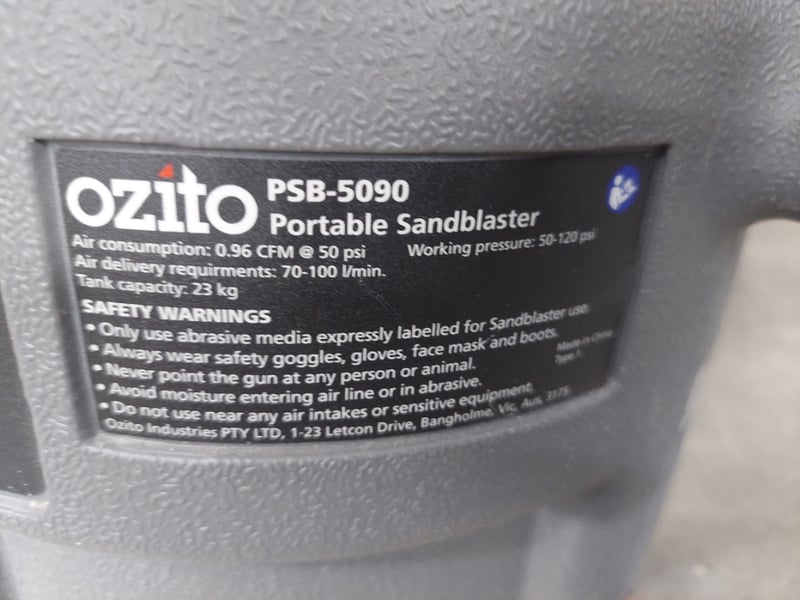 Osito 23kg Portable sandblaster. Model: PSB-5090Notes: item untested and signs of wear.