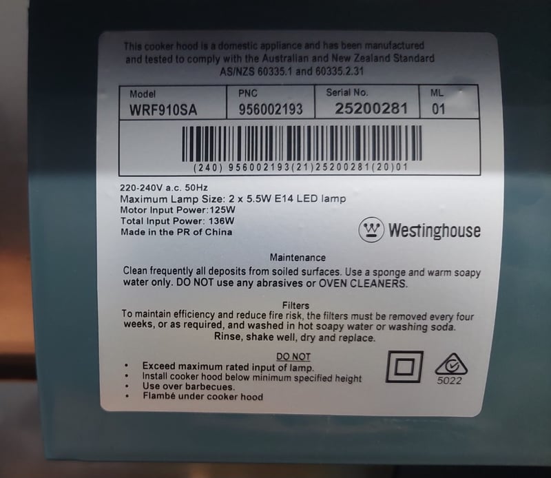 Westinghouse fixed rangehood.