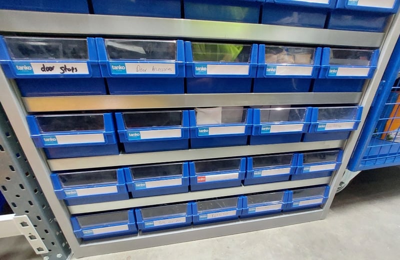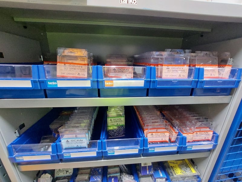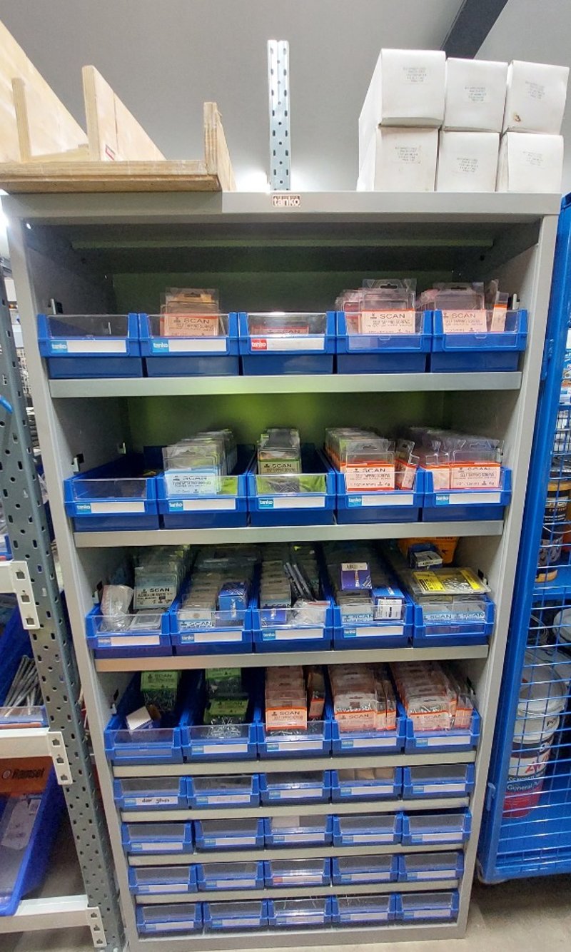 Assorted lot includes, cabinet, screws, rivets,door accessories and more. Dims cabinet: 176cm H, 90cm W, 42cm D Sold as lot. Notes: signs of wear.