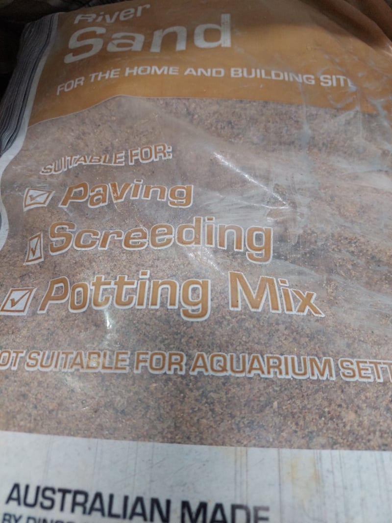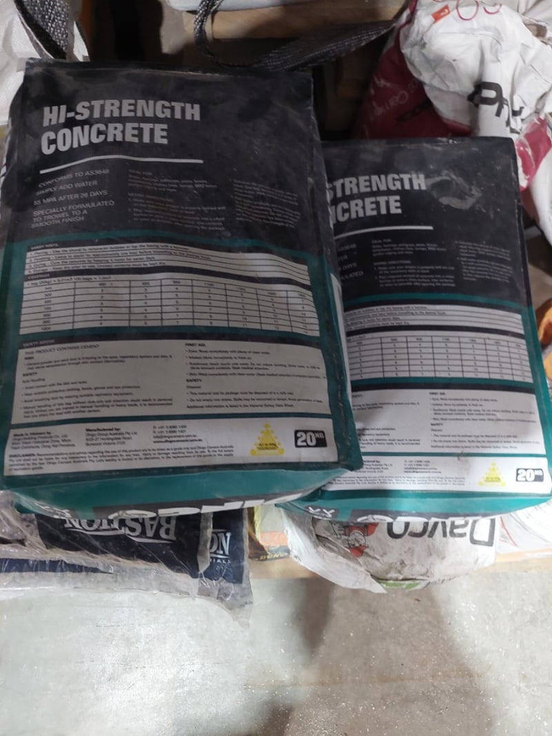 Assorted lot includes, 20kg bags of river sand, yellow B/ sand, Hi strength concrete and more...