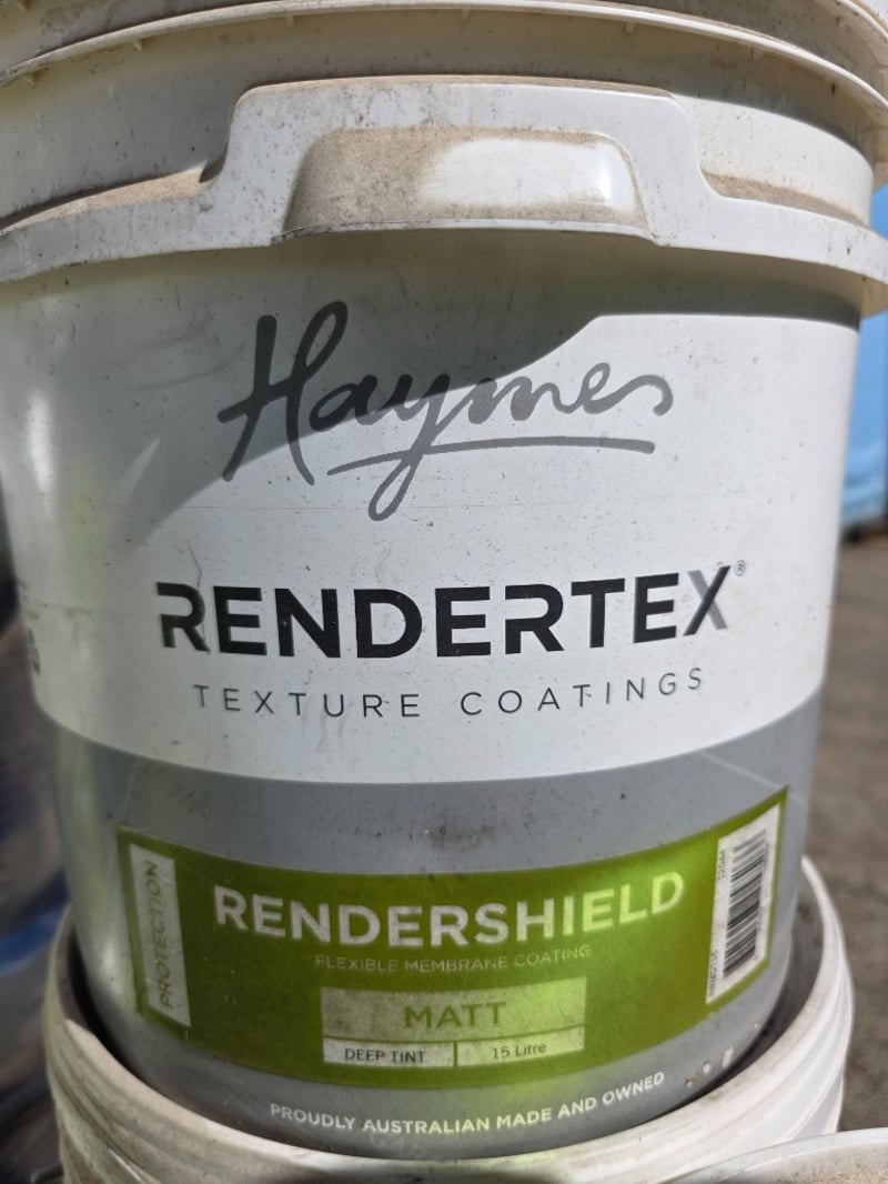 Haymes Rendertex Rendershield Matt Deep Tint, 15 litre tin Bid per Litre, Must take 15 Litres