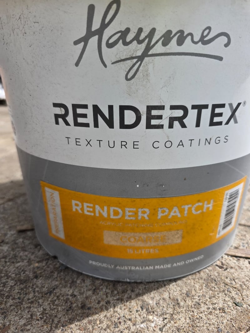 Haymes Rendertex Renderpatch Acrylic Patching Compound, 15 Litre Tin Bid per Litre, Must take 15 Litres