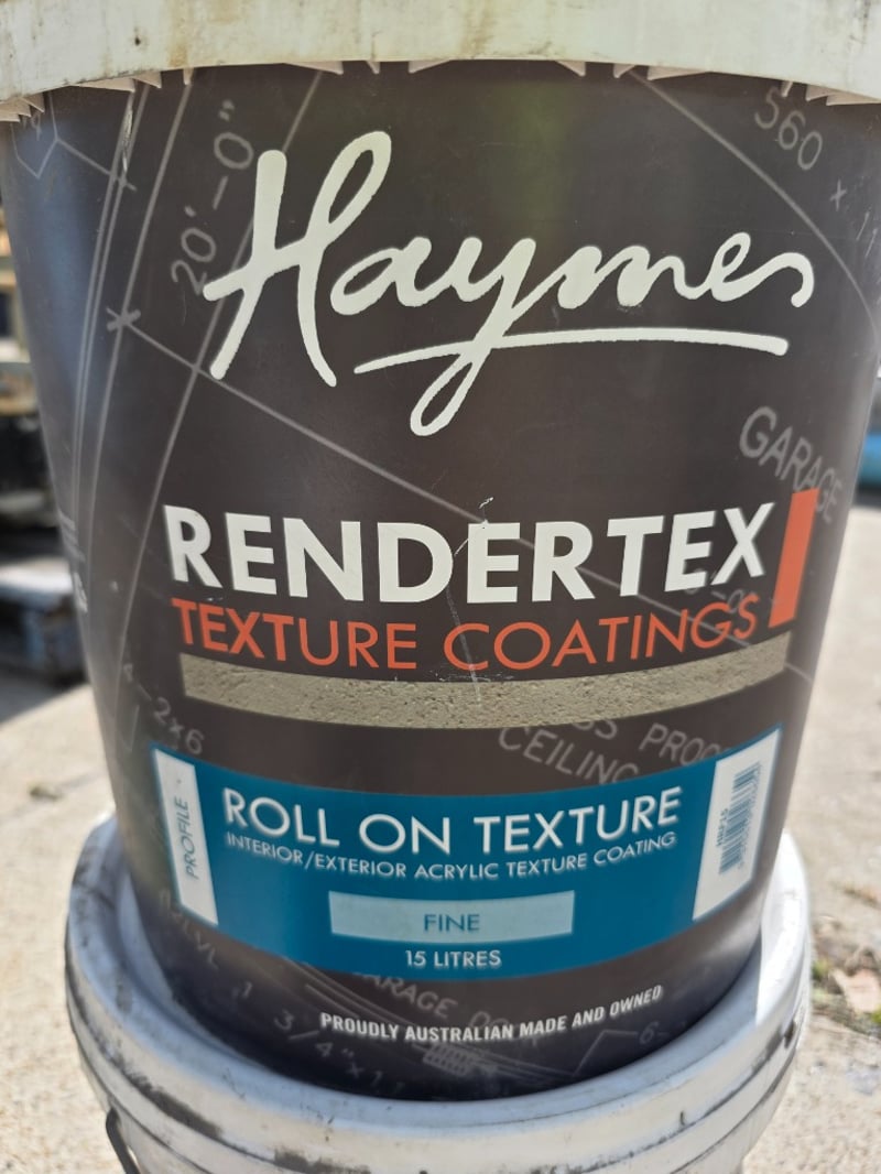 Haymes Rendertex Roll on Texture Fine, 15 litre tin Bid per Litre, Must take 15 Litres