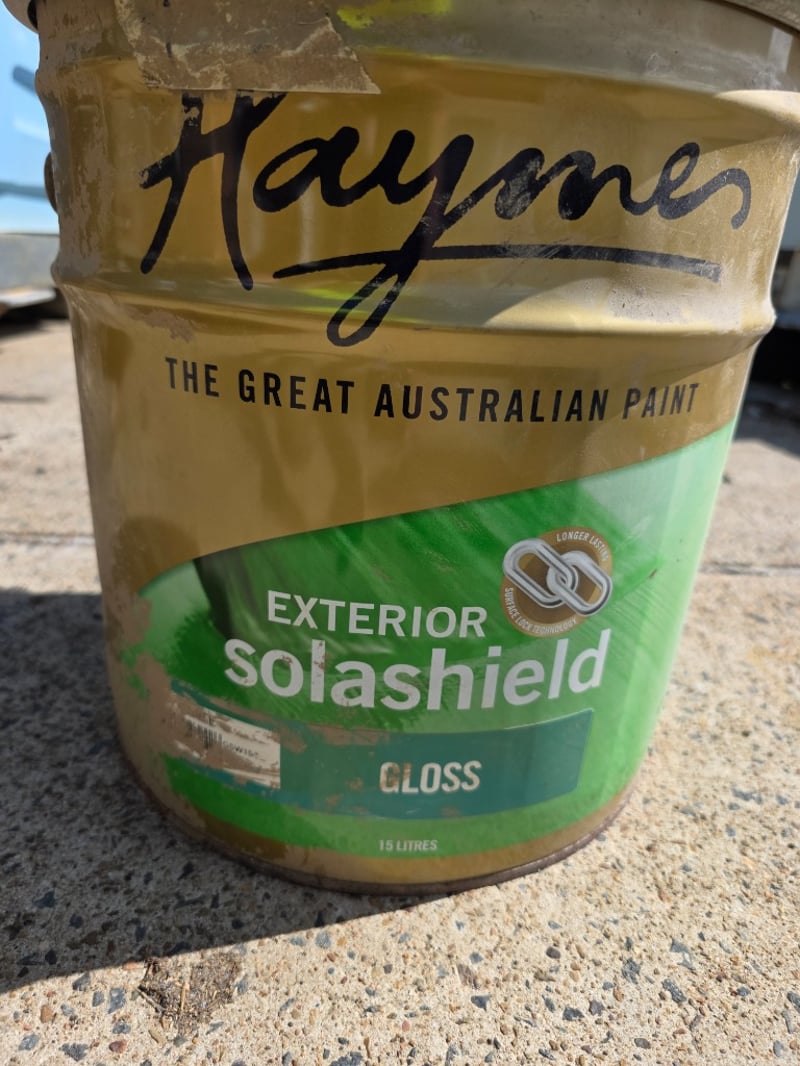 Haymes Exterior Solashield Gloss 15 litre tin Bid per Litre, Must take 15 Litres