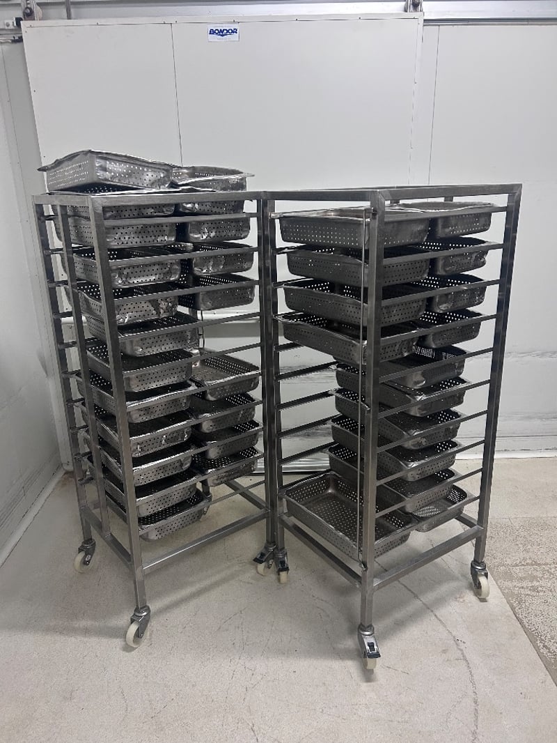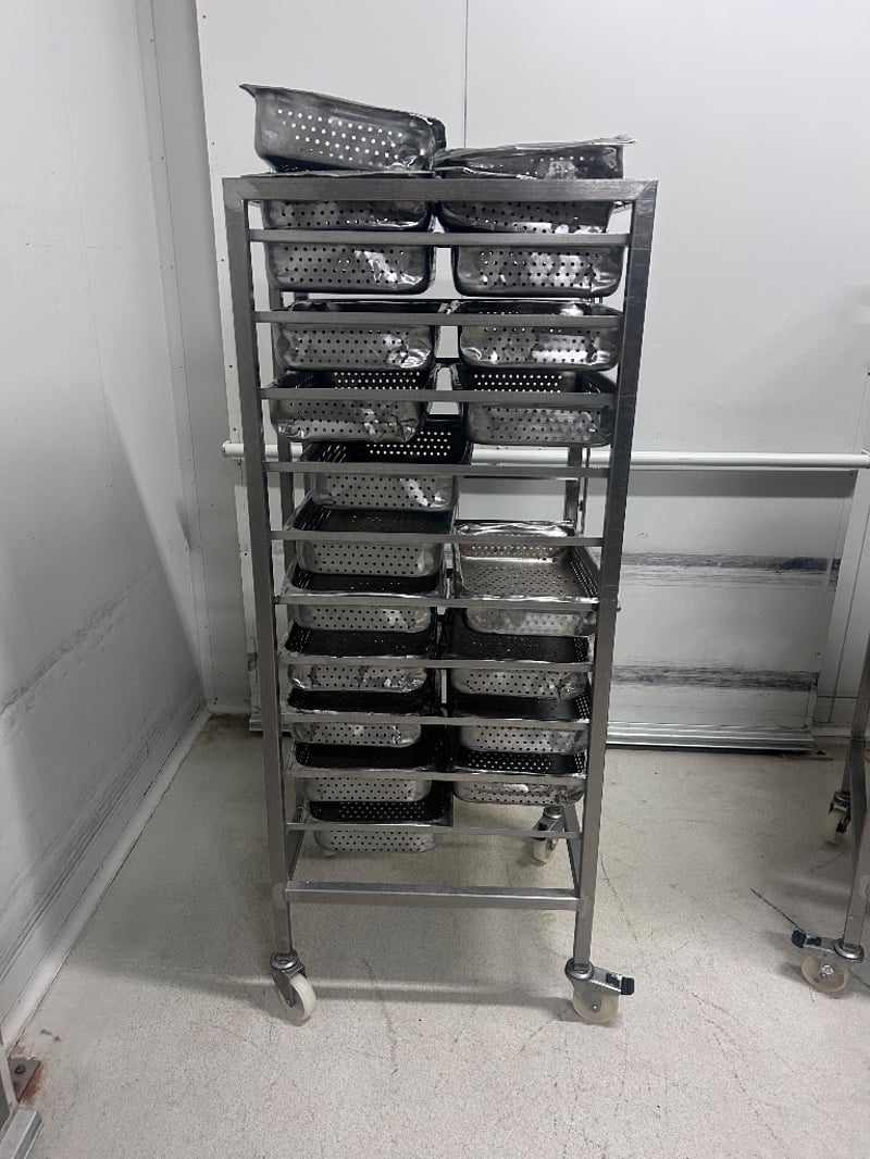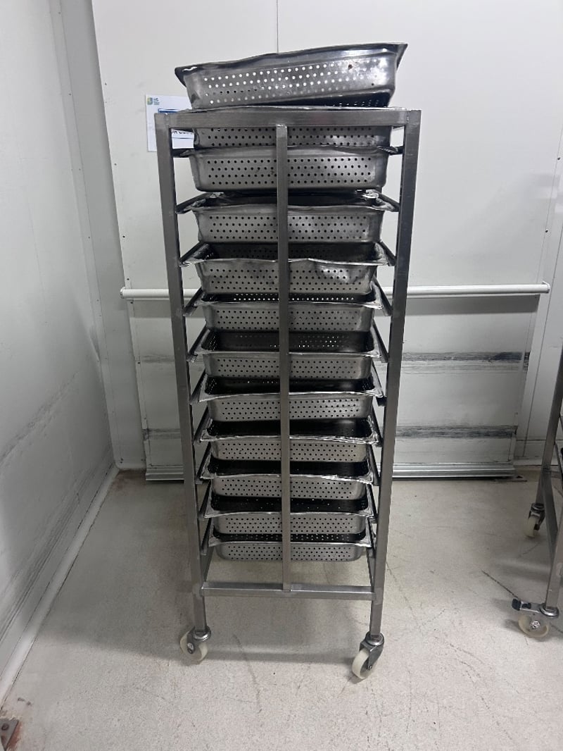 Storage Trolley, 2 x Stainless Steel Food Handling Trolleys, Including Stainless Steel Removable Trays.