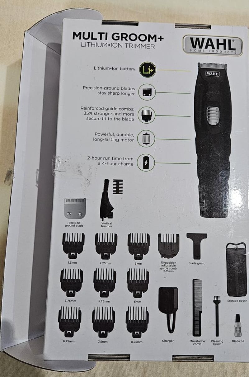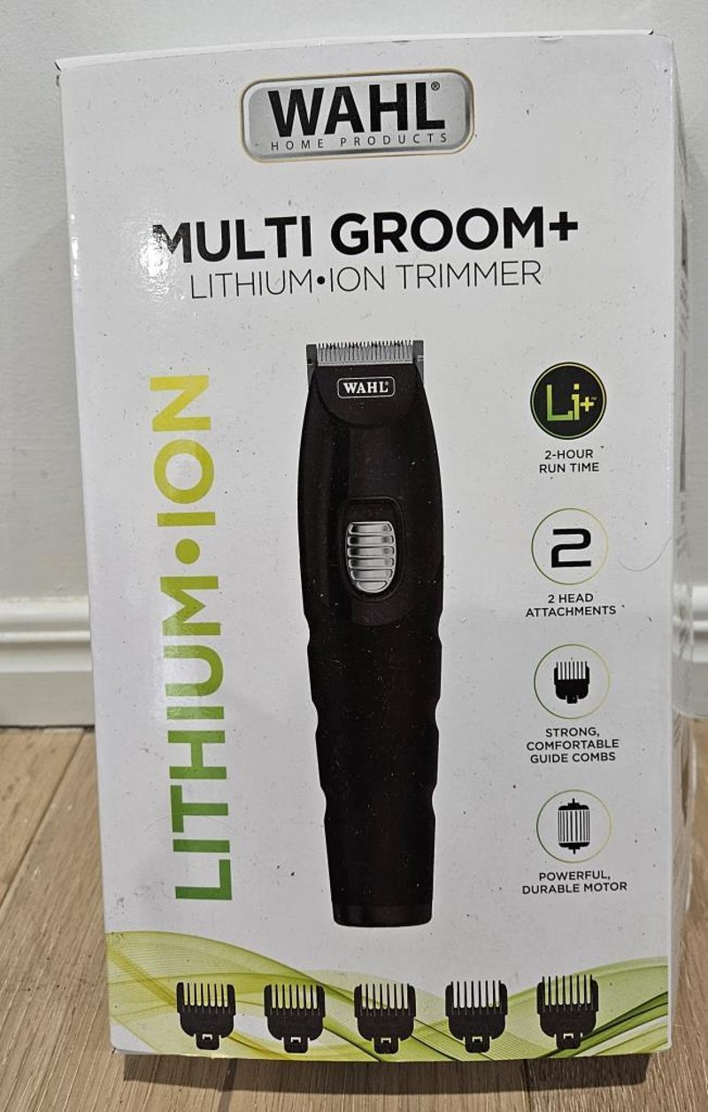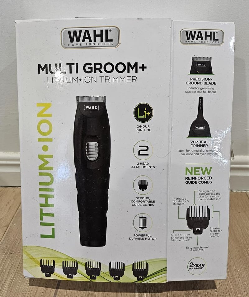 Wahl Multi Groom - Lithium Ion Trimmer. This powerful trimmer is equipped with a Lithium-Ion Battery that provides 2 hours of run time on a full charge. Whether you're looking to groom your beard or shape your eyebrows, this trimmer has you covered with its standard blade and vertical head attachment. Plus, with 9 individual guide combs and a 10-position comb, you can achieve any style you desire. And for added durability and strength, the new guide combs are 35% stronger than standard guides.