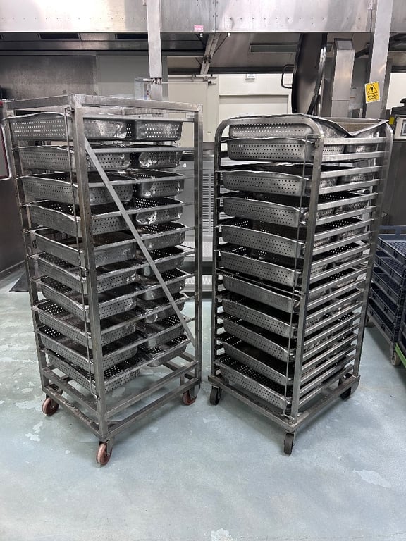 Storage Trolley, 2 x Stainless Steel Food Handling Trolleys, Including Stainless Steel Removable Trays.
