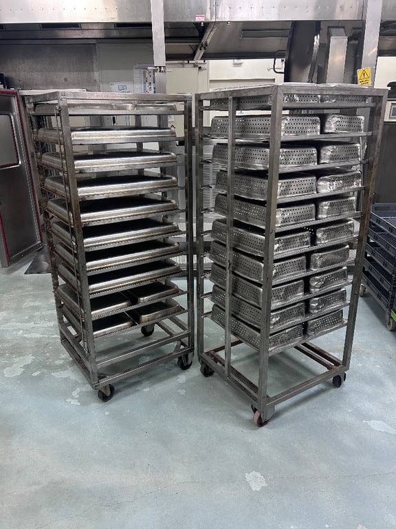 Storage Trolley, 2 x Stainless Steel Food Handling Trolleys, Including Stainless Steel Removable Trays.