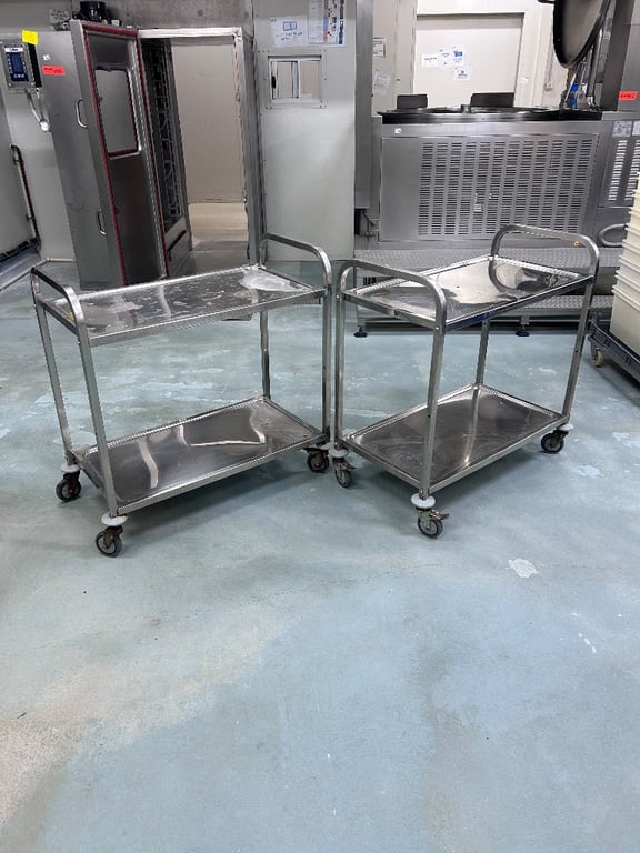 Trolley, 2 x Stainless Steel Trolleys, On Wheels.