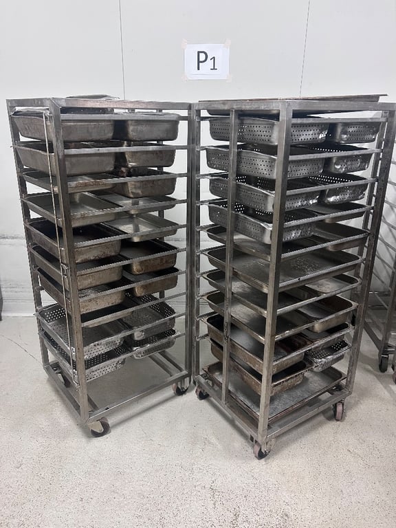 Storage Trolley, 2 x Stainless Steel Food Handling Trolleys, Including Stainless Steel Removable Trays.