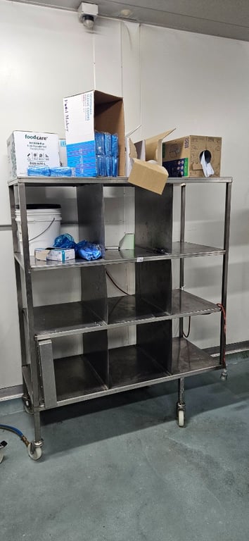 Work Bench, Stainless Steel Workbench with Shelf, Scale and moreW 213cm D 85cm H 165cmSold as lotLocation: Mawson Lakes, South Australia Contact: Ryne Aylward - 0418 449 819 or [email protected]