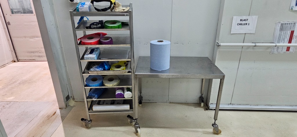 Shelves, Stainless Steel Shelf and Table, includes contents.Sold as lotLocation: Mawson Lakes, South Australia Contact: Ryne Aylward - 0418 449 819 or [email protected]