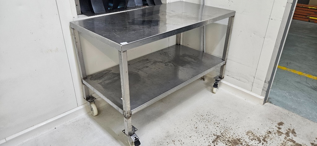 Table, 2 Tier Stainless Steel Table on Wheels, W 130cm D 68cm H 88cm