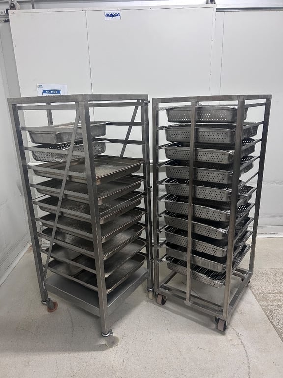 Storage Trolley, 2 x Stainless Steel Food Handling Trolleys, Including Stainless Steel Removable Trays.