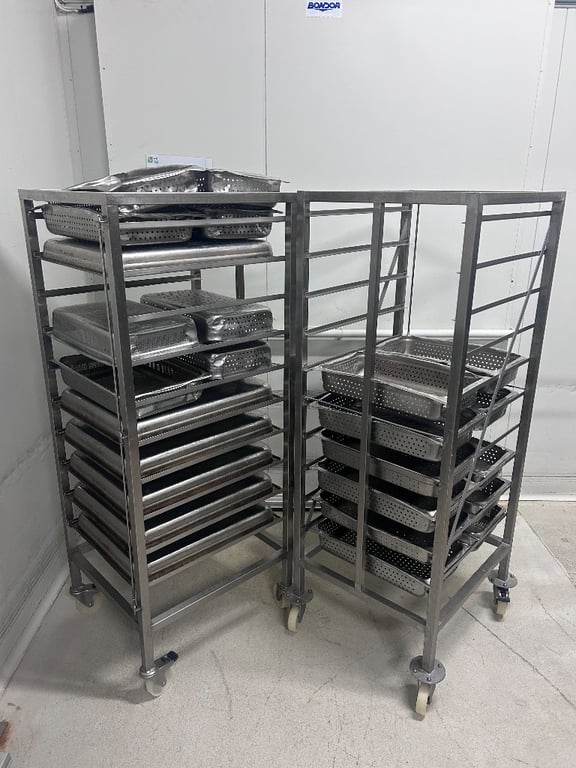 Storage Trolley, 2 x Stainless Steel Food Handling Trolleys, Including Stainless Steel Removable Trays.
