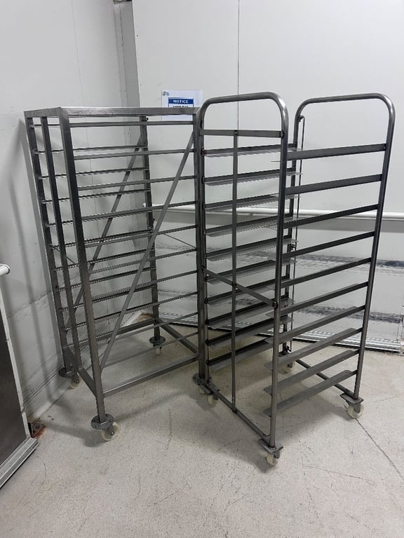Storage Trolley, 2 x Stainless Steel Food Handling Trolleys.Dimensions: H:168cm x W:78cm x D:61cm.Sold As LotNote: Items In Background Not Included.Location: Mawson Lakes, South Australia Contact: Ryne Aylward - 0418 449 819 or [email protected]