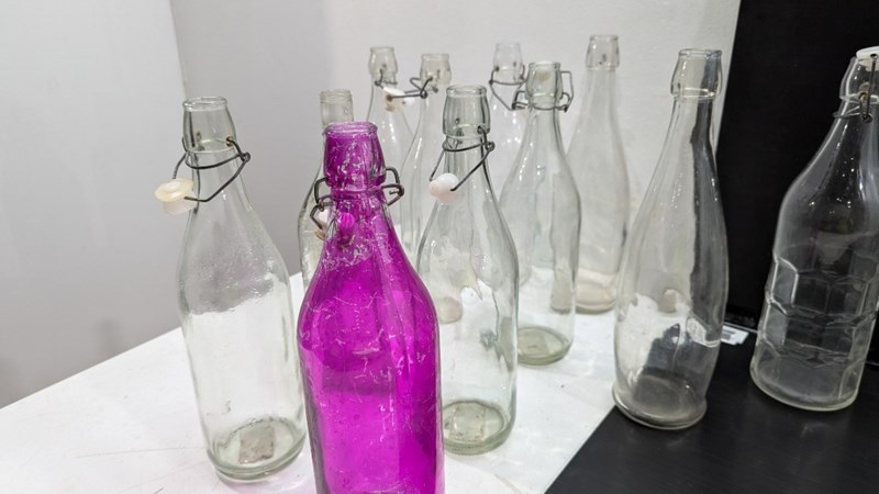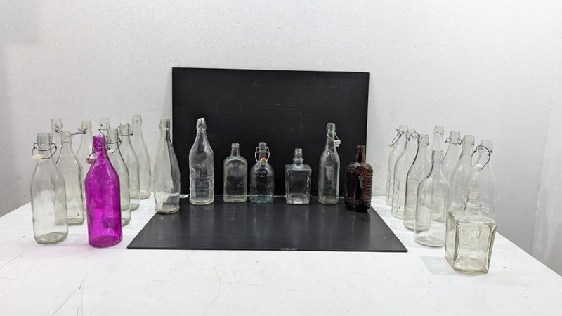 Assorted Glass Water Bottles, Various Sizes and Design, Quantity Per Lot