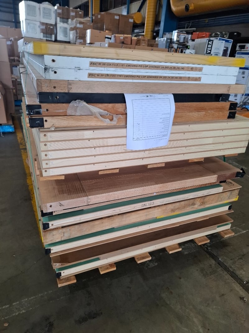 Assortment pallet of timber doors, models varyDimensions : 82-120 cm ( W) x 204-234 cm (D) x 3.4- 4 cm ( H) Sold as lot
