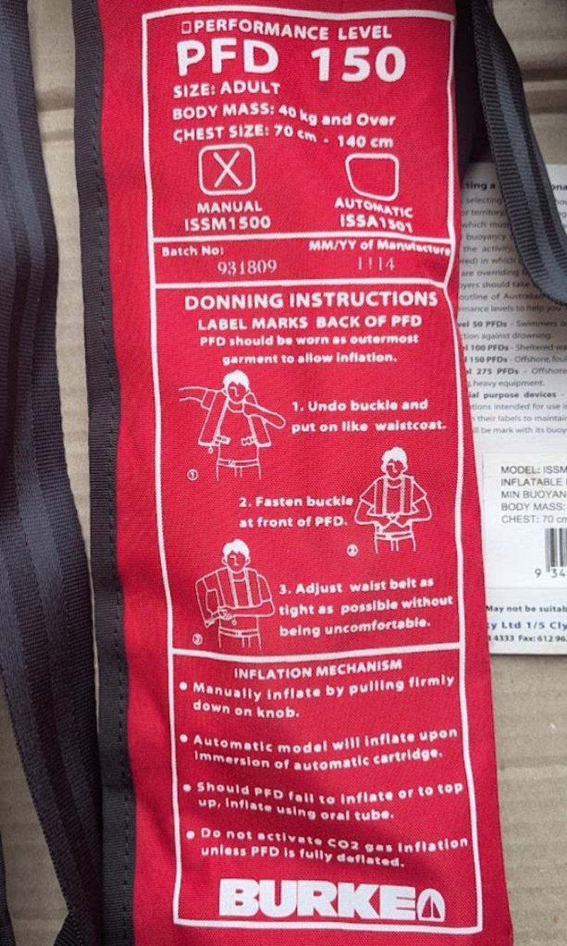 BURKE inflatable 150 PFD model ISSM1550 - adult size, qty 2