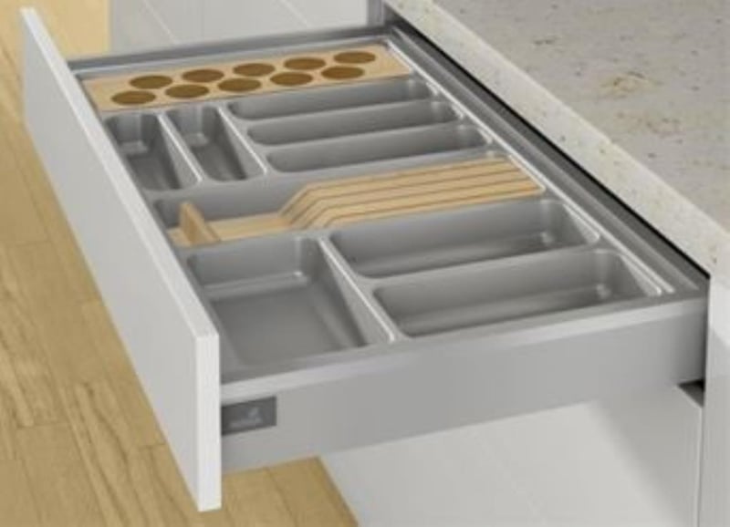 Large Sized Cutlery Insert, OrgaTray, Hettich, Grey, Plastic