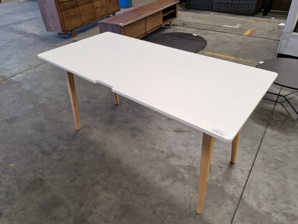 DeskDescription: White laminate to light laminated timber legsNote: Minor marks765mmH x 1500mmW x 700mmD