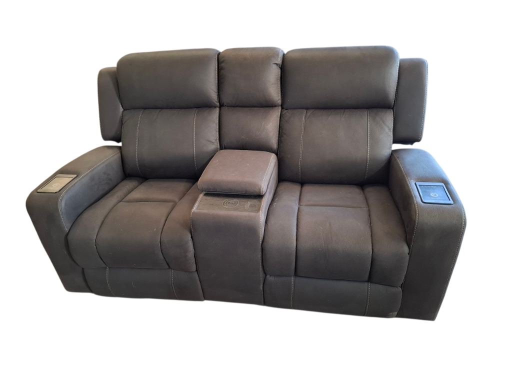 2-Seater Fabric Powered Recliner Sofa, Colour: Jet, Push to Open Cup Holders, Central Storage, Side Storage, Includes Power Pack Dimensions: 1760mm(W) x 800mm(D) x 1000mm(H)