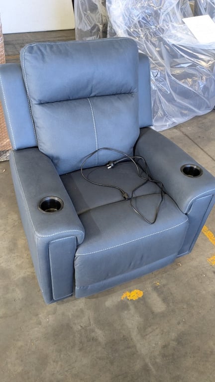 Fabric Powered Recliner Armchair, Colour: Aegean, Cup Holders, Push Button Controls, USB Charging Station Dimensions: 900mm (W) x 800mm (D) x 1000mm(H)