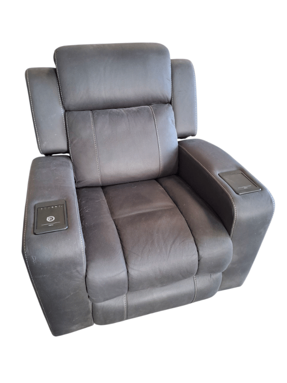Fabric Powered Recliner Armchair, Colour: Grey, Push Button Controls, USB Charging Station, Under Chair Strip Lights Dimensions: 900mm (W) x 800mm (D) x 1000mm(H)NOTE: POWER PACK NOT INCLUDED
