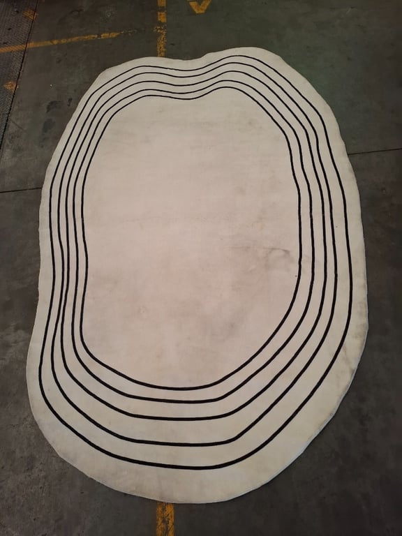 Soft Carpet light cream colour white black stripes Dimensions: 300 cm W x 196 cm D NOTE: STAINS AND MARKS, CLEANING REQUIRED