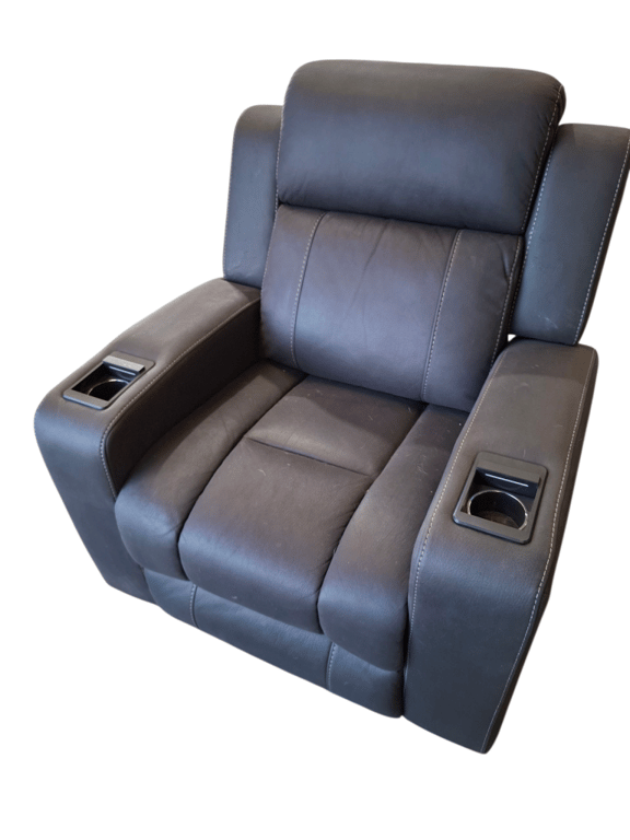 Fabric Powered Recliner Armchair, Colour: Jet, Cup Holders, Push Button Controls, USB Charging Station, Under Chair Strip Lights Dimensions: 900mm (W) x 800mm (D) x 1000mm(H)