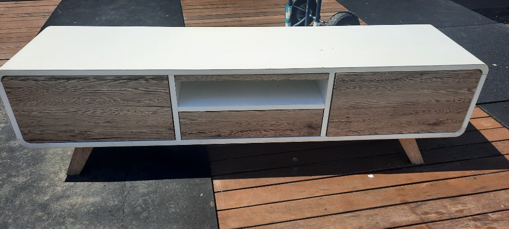 tv unit, timber size 46cmH x 40cmW x 160cmLNOTE: ONE LEG DAMAGED