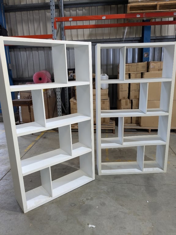 Timber storage shelves, size 171cmH x 29cmW x 95cmL SOLD AS LOT NOTE: SCUFFS AND MARKS