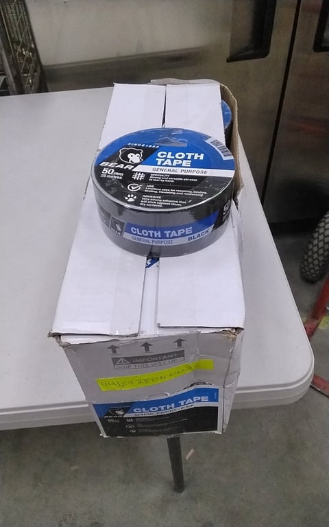 Cloth Tape, Make, Bearing Description, 12 x rolls Cloth tape colour black. 25mtrs to roll 50mm wide, Sold as box lot