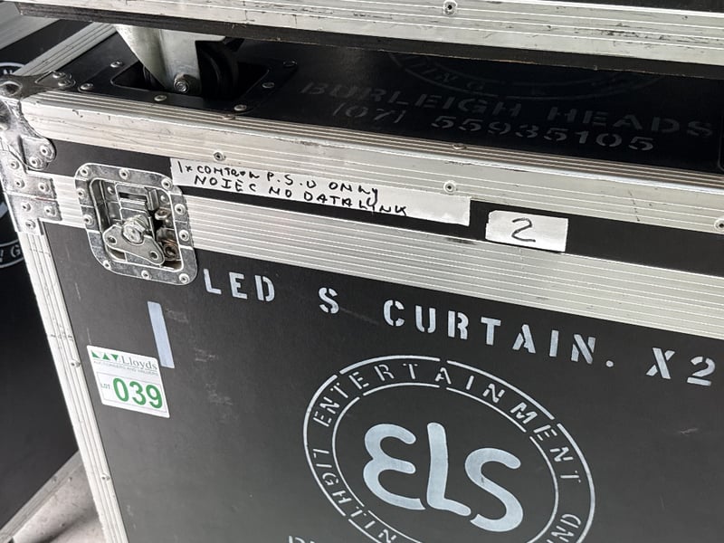 LED Curtain, In Road Case 2 x 6m x 4m LED drape 1 x Controllers Please note condition on road case caster wheels varys Location: Burleigh, QLD Contact: Jamie Fountain on 0486 045 295 or [email protected] Collections must occur Monday 24th to Wednesday 26th of November between 9am to 4pm, once full cleared funds have been received. Collection dates to be strictly adhered to. Items not collected during this period will likely be deemed as abandoned
