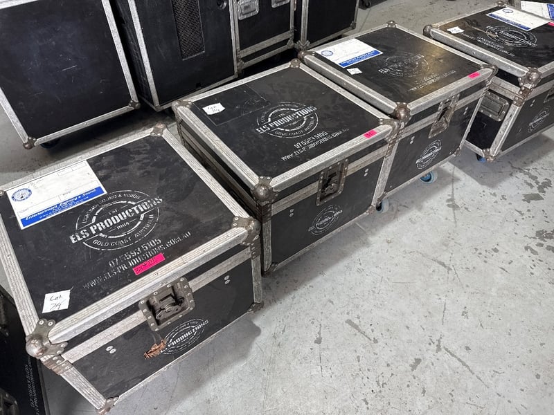9 x Road Case, Caster Wheels, 530mm 530mm 390mm BID PER EACH MUST TAKE ALL Location: Burleigh, QLD Contact: Jamie Fountain on 0486 045 295 or [email protected] Collections must occur Monday 24th to Wednesday 26th of November between 9am to 4pm, once full cleared funds have been received. Collection dates to be strictly adhered to. Items not collected during this period will likely be deemed as abandoned