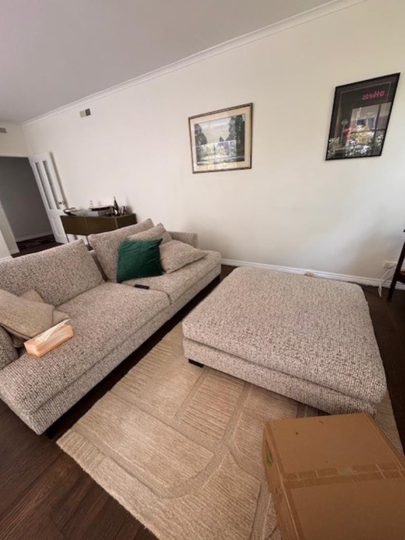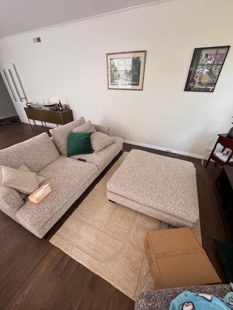 RRP $5,200.00 CAMERICH Easy Time 3 Seater Sofa & Ottoman Actual Colour - Neutral to beige tan tones Lighting has effected the colour palette in some photos FABRIC DALE-01 X2 BACK CUSHIONS X2 THROW CUSHIONS 230cm x110cm x 620cm H OTTOMAN Dimensions 110cm x 110cm x 39cm NOTE: From a Smoke Free, Child Free and Pet Free Environment Accessories not included Sink into comfort with this beautifully designed Easytime 3-seater sofa — the perfect blend of modern style and everyday relaxation. With its extra-deep seating and plush cushions, this sofa is made for unwinding at the end of the day, hosting guests, or simply stretching out in total comfort.
