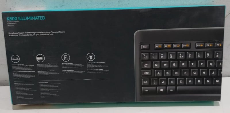 Keyboard, K800 Illuminated, Logitech. Note: untested, signs of wear Bid per each