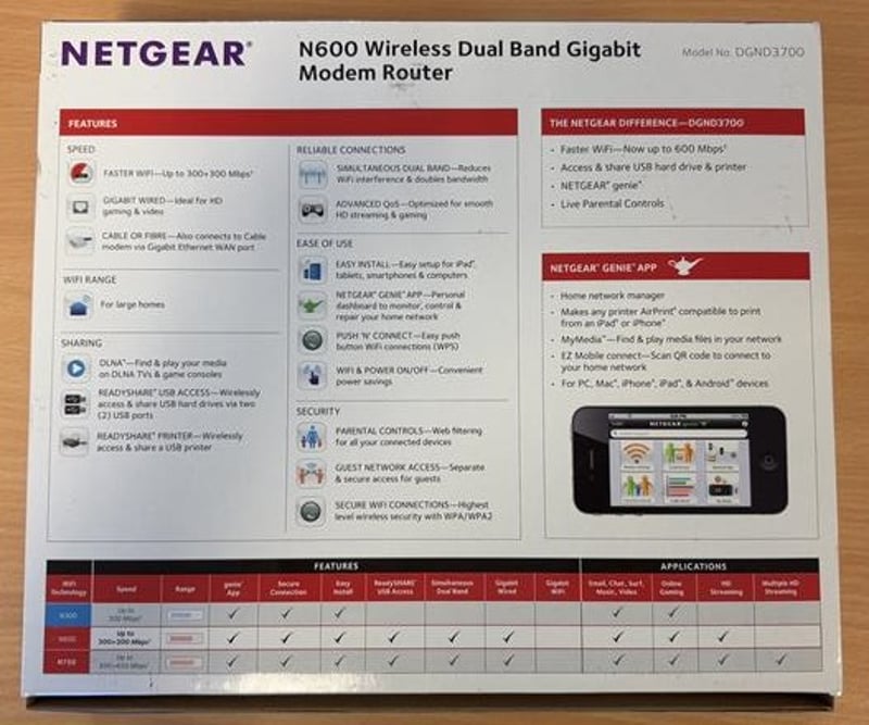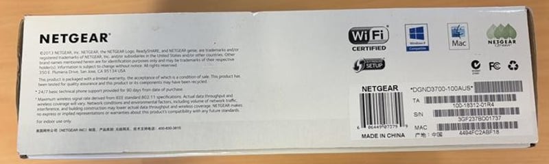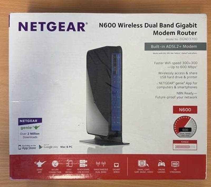 NETGEAR N600 Wireless Dual Band Gigabit Modem Router (Model: DGND3700)