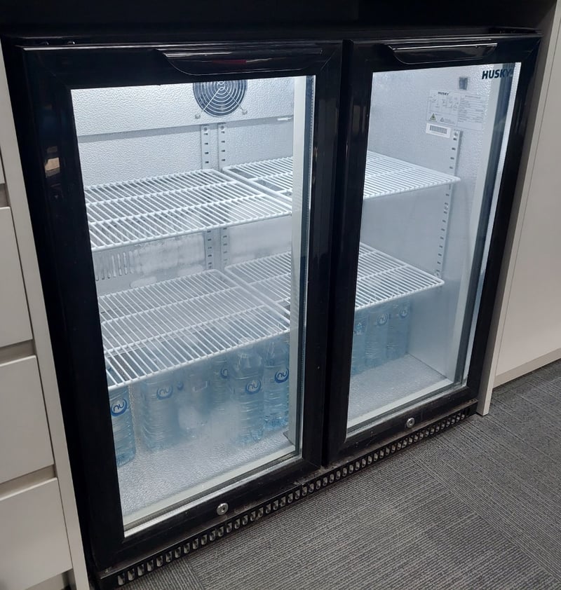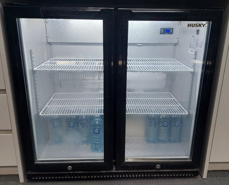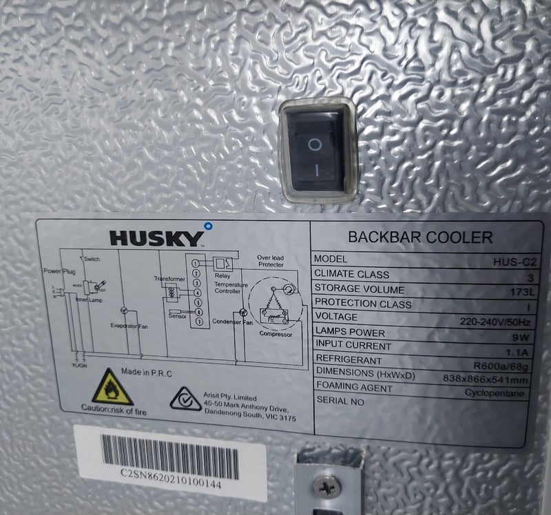 Backbar Cooler - Husky HUS-C2, 2 glass doors, 173L, illuminated, S/N: C2SN8620210100144 Dimensions: 86cm L, 84cm H, 54cm W Note: item is untested, signs of wear.