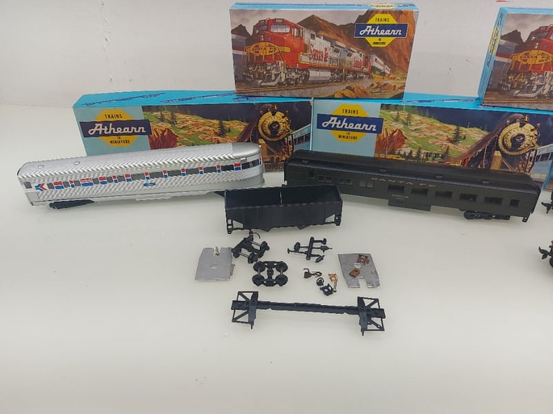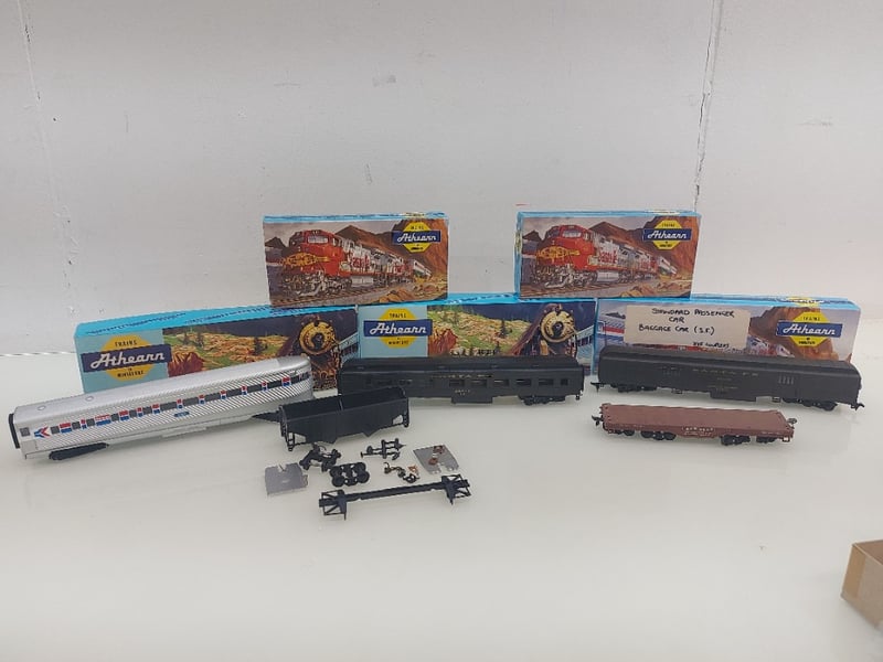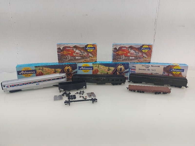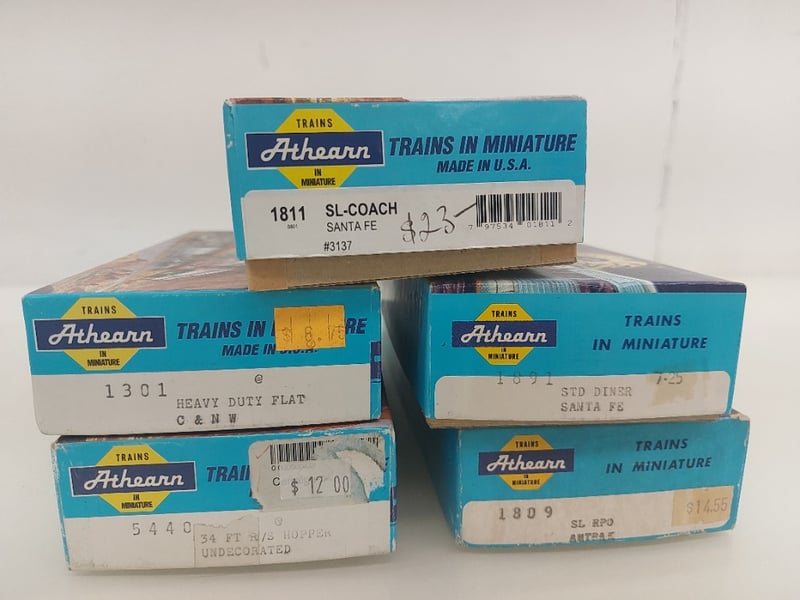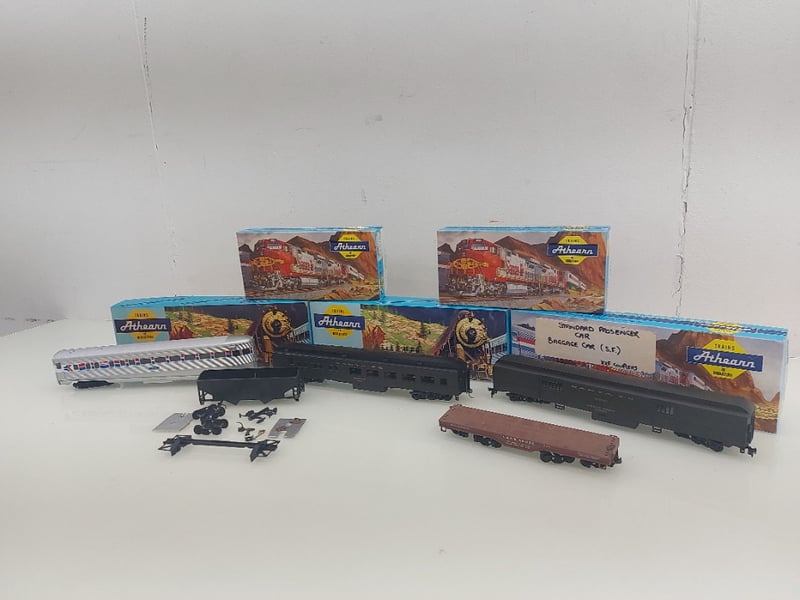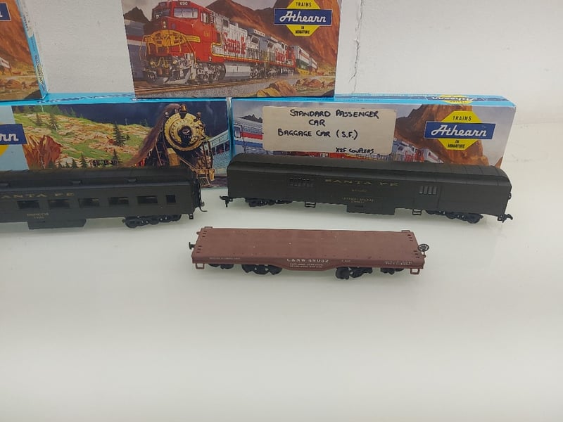 Model Train Lot Includes, Sl Coach, Santa Fe, Heavy Duty Flat, 34 FT R/S Hopper Undecorated, STD Diner Santa Fe, Sl RPO Amtrack And More