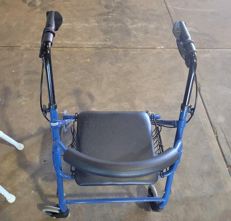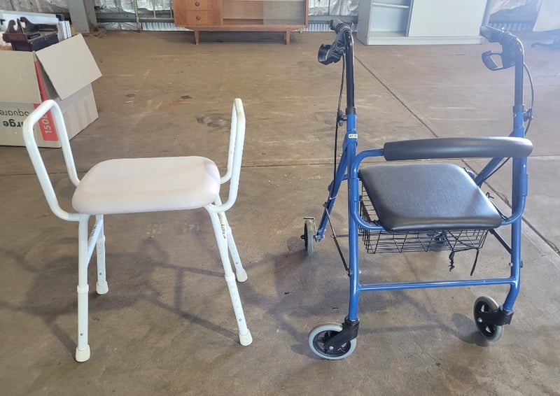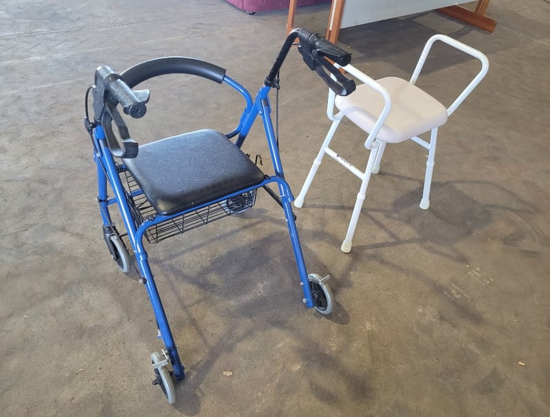 Accessibility Aids, 1 Walker/Seat plus 1 Seat. Used Condition. SOLD as LOT.